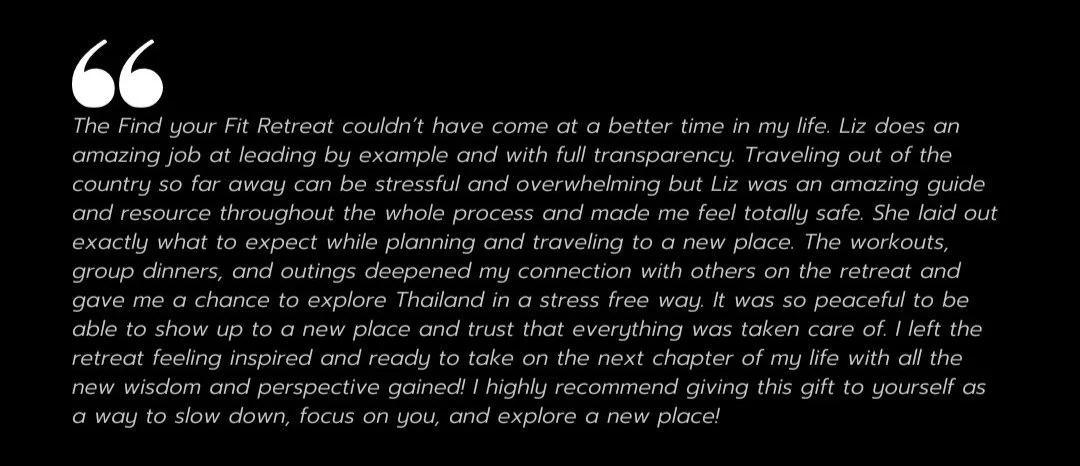From island hopping to cooking classes to exploring Koh Lanta, there will be plenty of group activities AND time to adventure solo or with new friends. Liz will lead daily workshops focused on creating a roadmap for your future. Find Your Fit. What does that mean? How do you FIT into this crazy world? How do you harness your unique gifts, talent and light to create the biggest, best life possible. It all starts with booking this trip half way around the world and giving yourself time to focus, reflect and ask yourself the important questions.